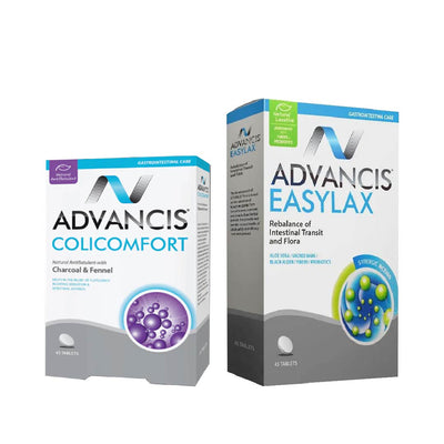 This digestive-support bundle combines Advancis Colic Comfort, formulated to help relieve gas, bloating, and intestinal discomfort, with Advancis Easylax, designed to support gentle and regular bowel movements. Together, they provide a complete solution for improving digestive comfort and intestinal balance.
